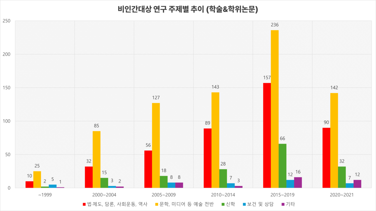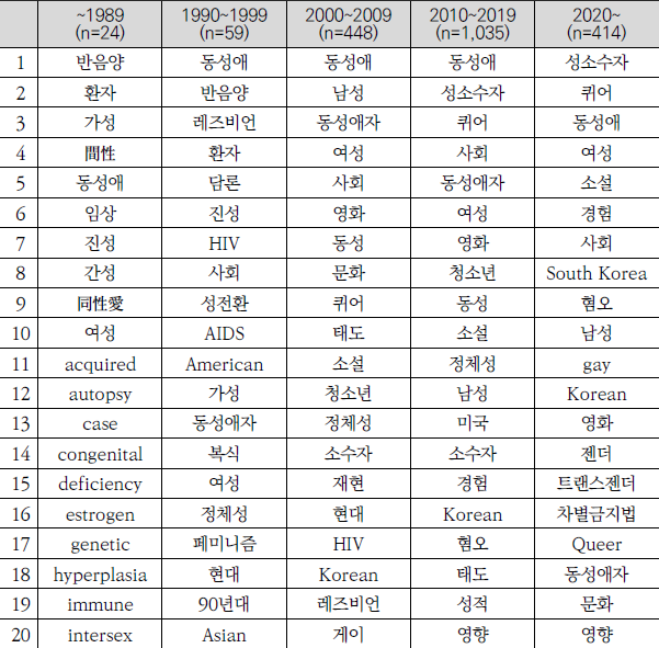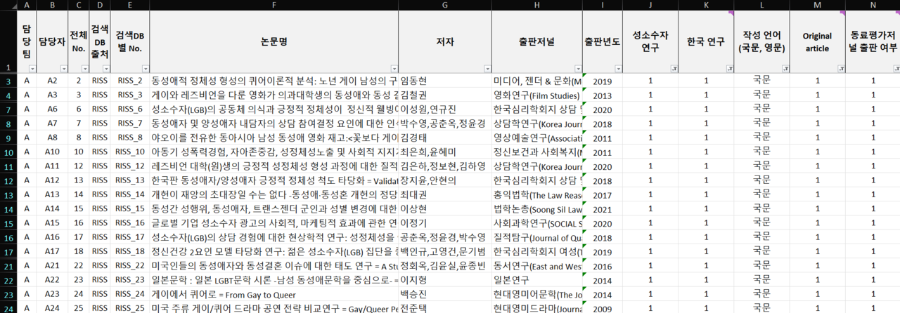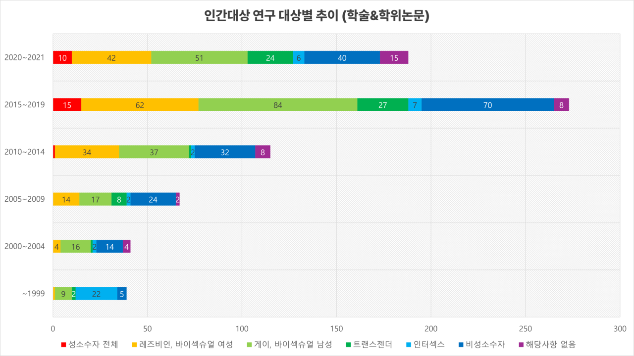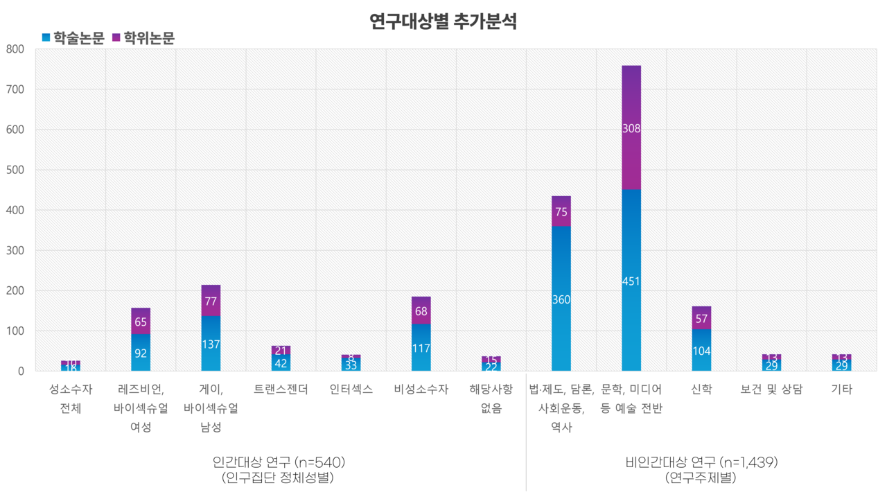 아래 내용은 2024년 제16회 성소수자 인권포럼에서 본 연구팀이 발표한 내용의 일부를 축약한 것입니다.자세한 연구 방법 및 추가 분석을 반영한 풍부한 해석은 논문으로 출판되어 있습니다. 주요 결과 요약을 보신 뒤 한국성소수자연구아카이브에 대한 심층적인 분석이 궁금하시면 아래 논문을 참고하시기 바랍니다.이혜민· 박정은· 전원근· 김종빈· 이호림· 정성조(2024). "한국 성소수자 연구 동향과 과제: 체계적 문헌고찰 및 텍스트 분석". 『경제와사회』 143: 303-341.