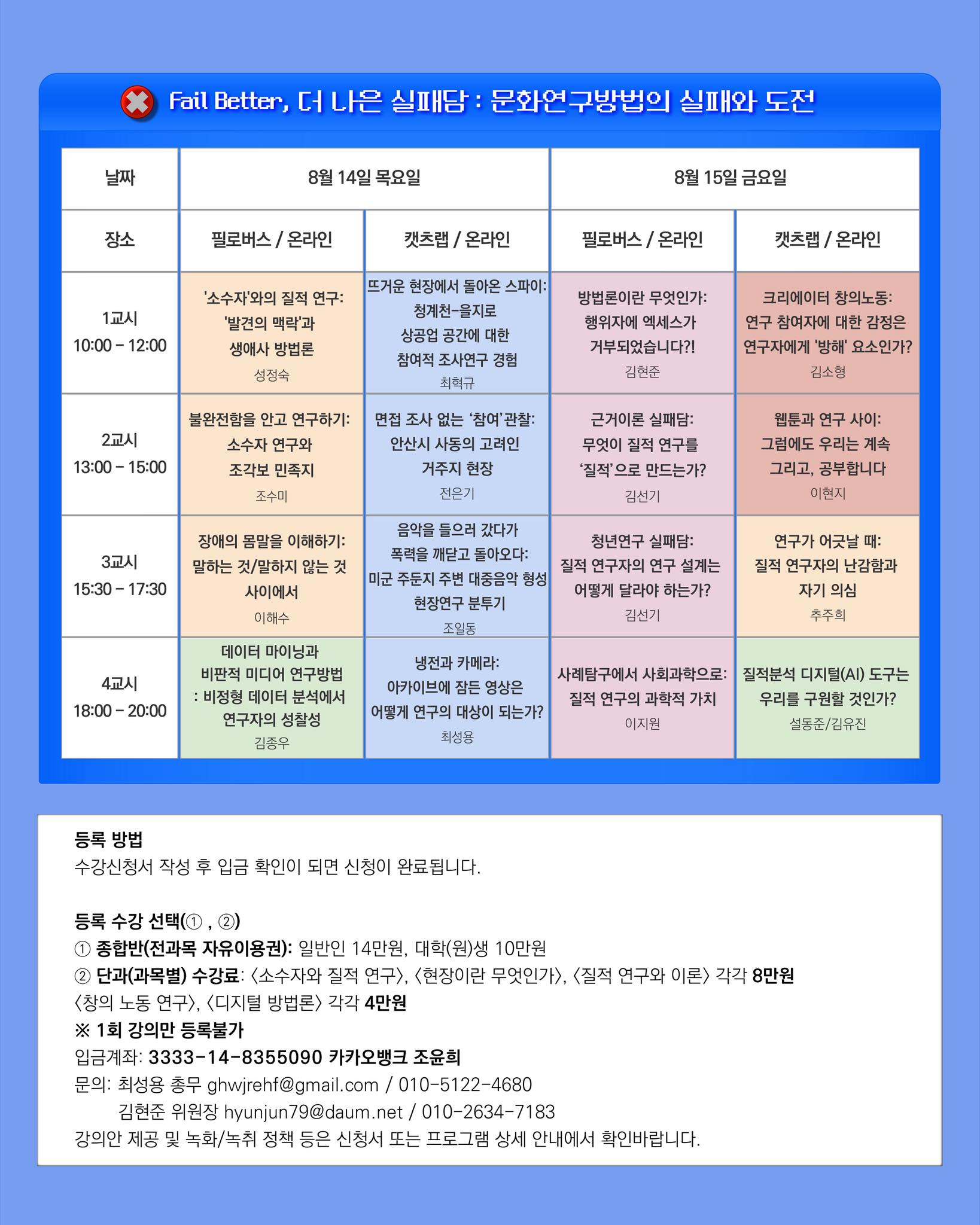 "Fail Better, 더 나은 실패담: 문화연구방법의 실패와 도전"(8/14-15)